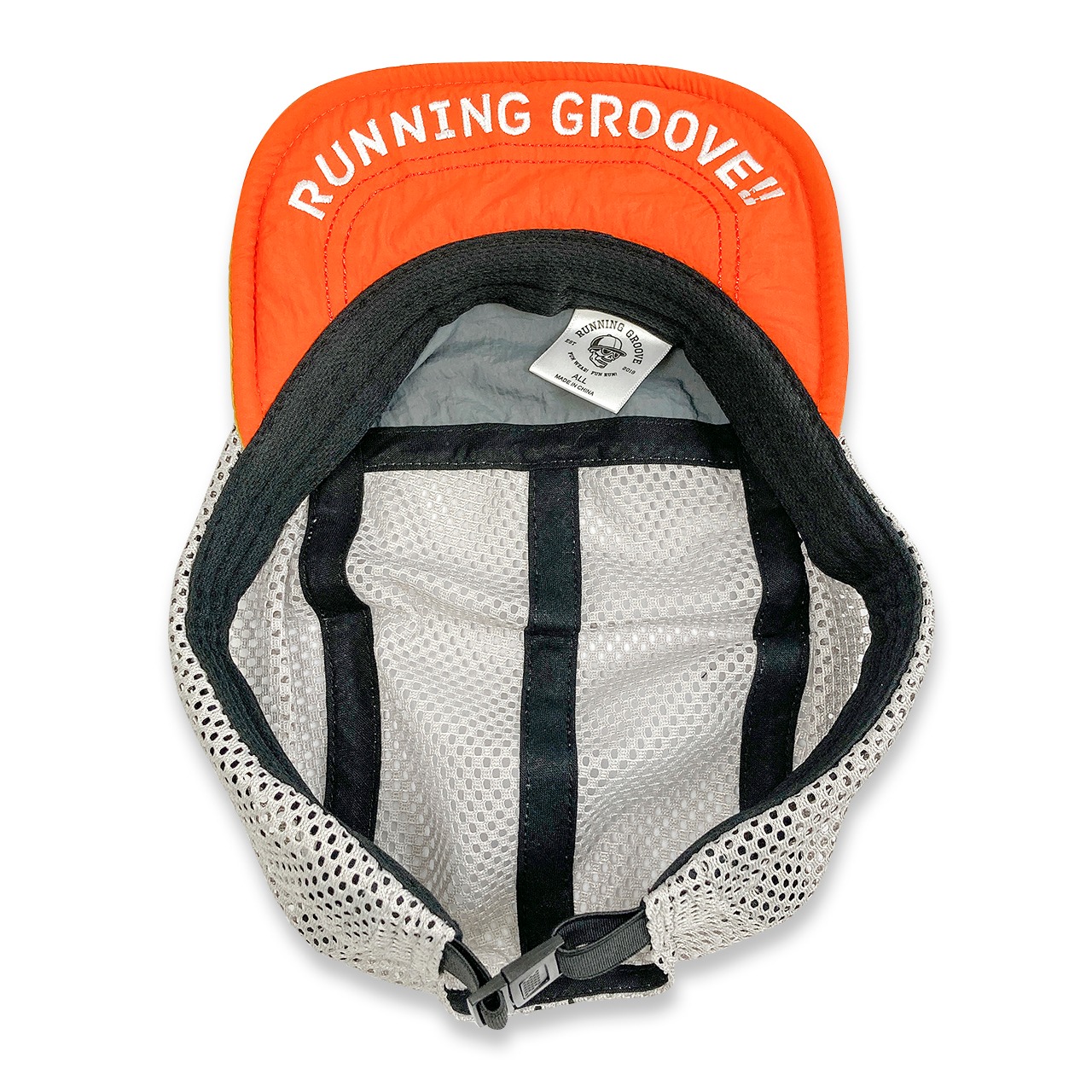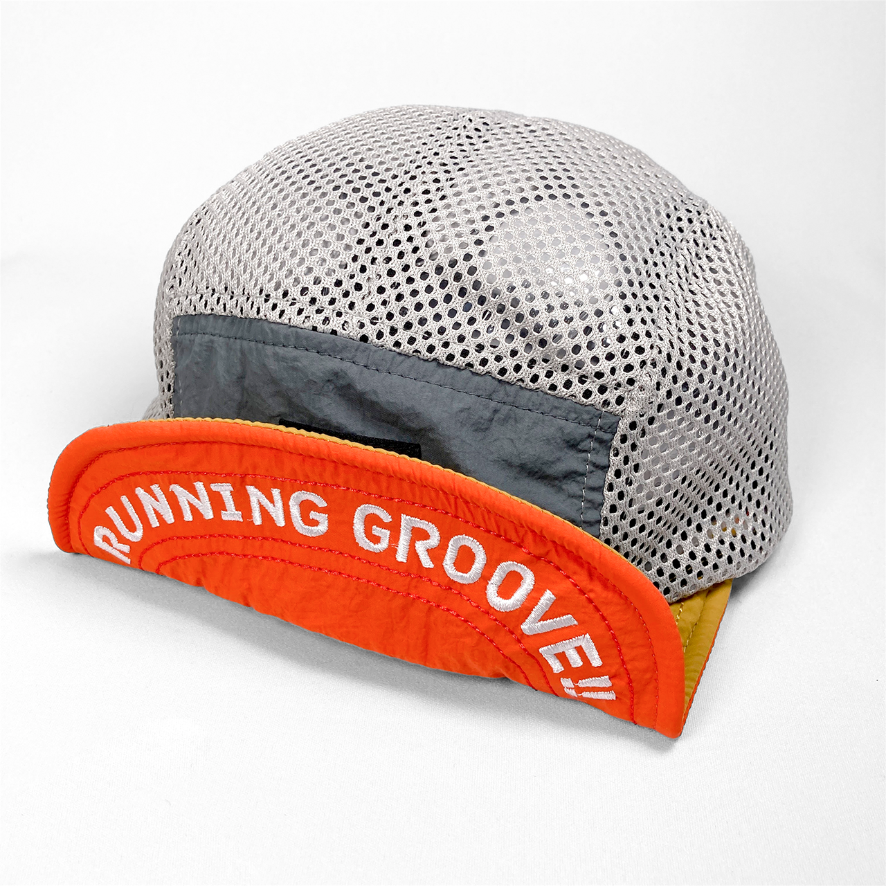ゴールデンイエローとキャロットオレンジがアクセントカラーとなるように色彩設計。スチールグレイはどのようなコーディネイトにも合わせやすい中間色として、またゴールドイエローとの相性を考慮して選別しました。通気性に優れたポリエステルメッシュ使用。バイザー縁にはプラスチックワイヤーを施し、運動時の汗や雨でもバイザーが垂れ下がらず、お好みの形状を保ちます。